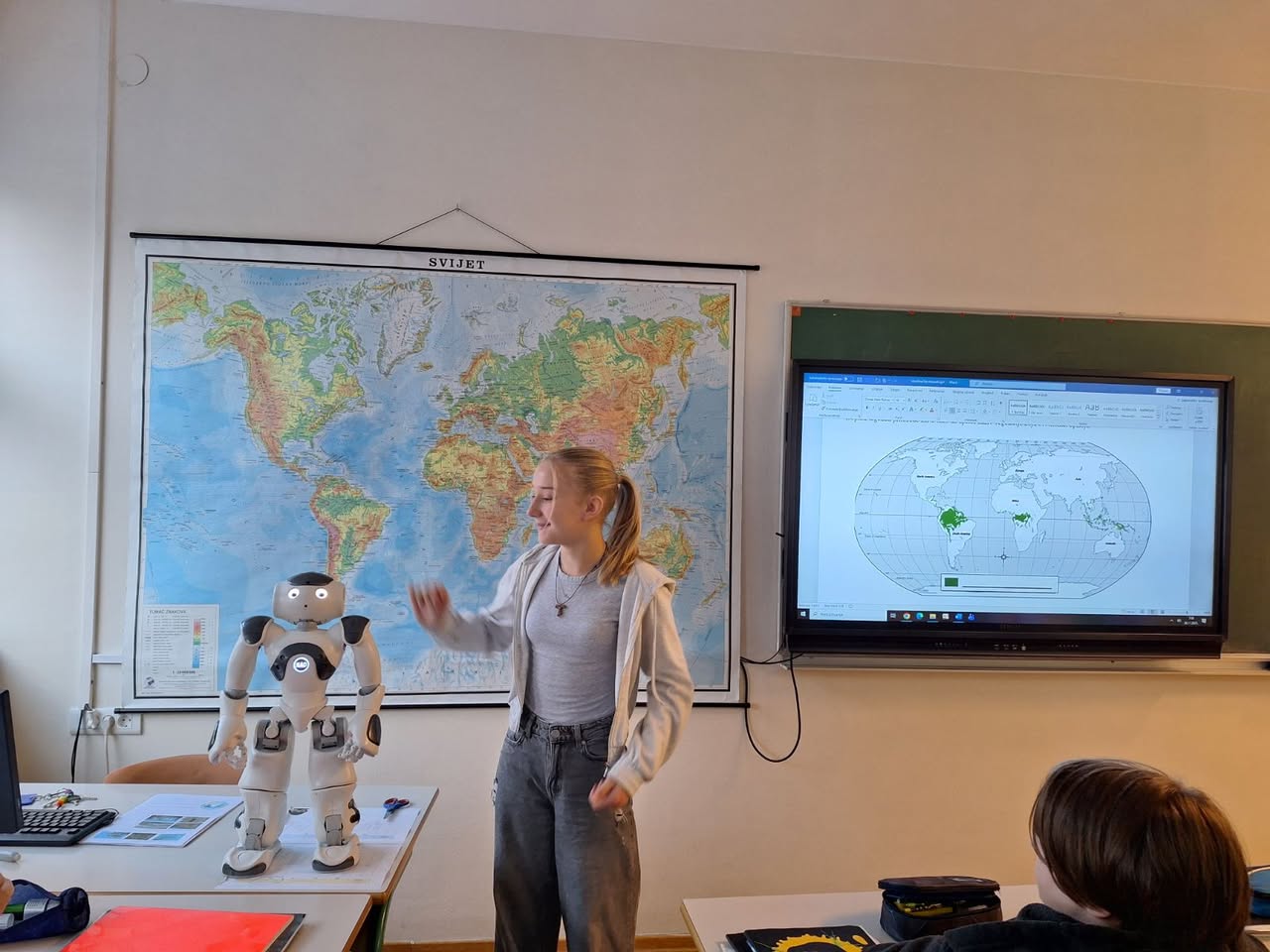 In collaboration between teachers Danijela Perenc-Jaušovec and Ivana Ružić, students at the First Primary School Čakovec took part in an exploratory geography lesson supported by the humanoid robot NAO. Together, they embarked on a research expedition through the world’s largest forest.
