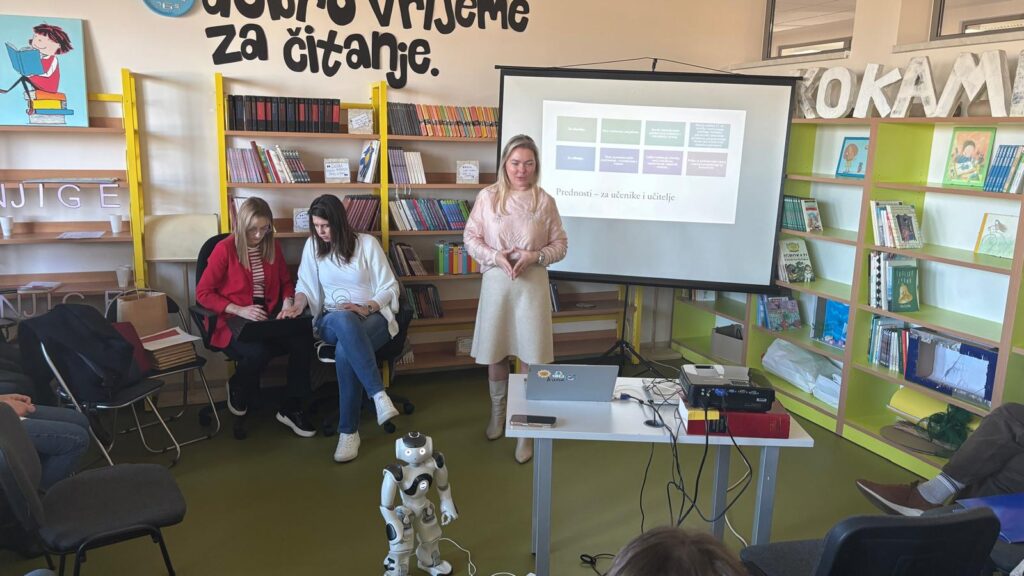 At the County Professional Council Meeting of School Librarians, held on 28 November 2025 at Vladimir Nazor Primary School in Pribislavec, three ICT teachers from the First Primary School Čakovec presented the innovative course My Robot, My LearnMate, which integrates the humanoid robot NAO into teaching and learning.